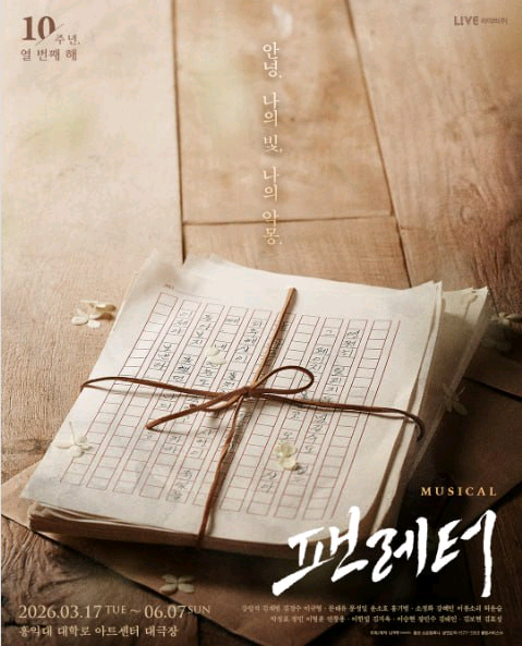 뮤지컬 <팬레터>10주년 기념 앵콜공연 서울 홍익대 대학로 아트센터 대극장 2026.06.07 공연 마감일까지 좌석보유 날짜 요일별 일정체크 필수입니다 무대 가까운 인기 구역 좌석과 시야 확보된 자리 보유하고 있습니다. 문의 주시면 즉시 확인 후 안내드리며 빠른 진행 도와드립니다.