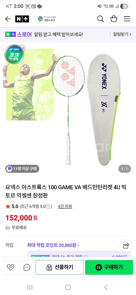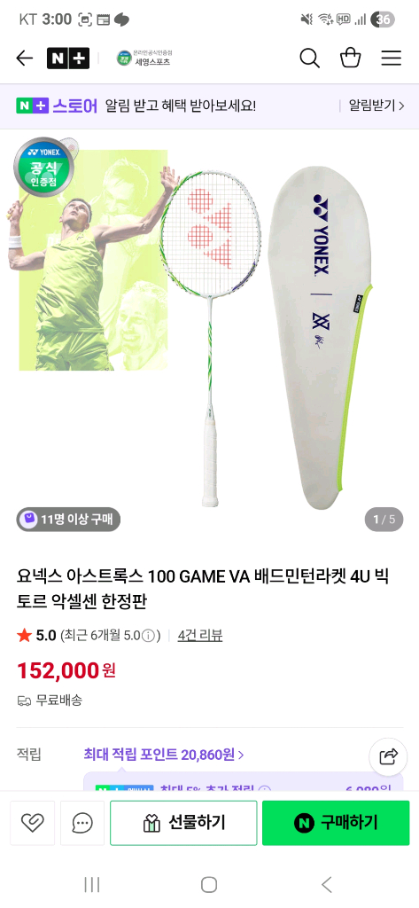 개인정보(거래정보)를 주고받는 행위는 사기에 노출될 수 있으므로 즉시 중고나라로 신고해 주세요요넥스 아스트록스 100game 한 번도 쓰지 않음. 새상품 그 자체. 거트 미착용 헤드커버 0 풀케이스0 포장0 하자 있을시 100% 환불 택배비 포함 12만원 연두색 계열 이뿝니다.