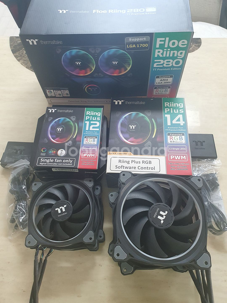 -하이엔드 브랜드 써멀테이크 제품입니다! -각개판매 협의 가능합니다.[일괄20만] 1️⃣써멀테이크 Floe Riing RGB 280 수랭쿨러 [60,000원] 🔹미개봉 새상품-업그레이드 2세대 버전 🔹LED미세번짐으로 2024년 교품후 보관[3월 보증만료] -신품이라 최소5년은 끄떡없을겁니다. 🔹상품정보: https://prod.danawa.com/info/?pcode=9372432 2️⃣써멀테이크 Riing Plus 120mm 3팩+콘트롤러 [50,000원] 🔹약1년반 사용 -상태S급 🔹상품정보: https://prod.danawa.com/info/?pcode=5387292 3️⃣써멀테이크 Riing Plus 140mm 3팩+콘트롤러 [60,000원] 🔹약1년반사용-상태S급 🔹상품정보/가격: https://prod.danawa.com/info/?pcode=14481305 4️⃣ 팬추가: Riing Plus 140mm*2ea [40,000원] 🚩직거래-일산/김포 🚩안전거래시-수수료 별도 🚩계좌•택배거래시-택비 무료 🔸정성•튼튼포장-전과정 인증샷 보내드립니다❗ 🔸중고거래 특성상-파손면책/환불•반품불가 진행입니다❗ ⛔🚫교환/질문잠수/찔러보기/타사이트유도 칼차단!⛔🚫