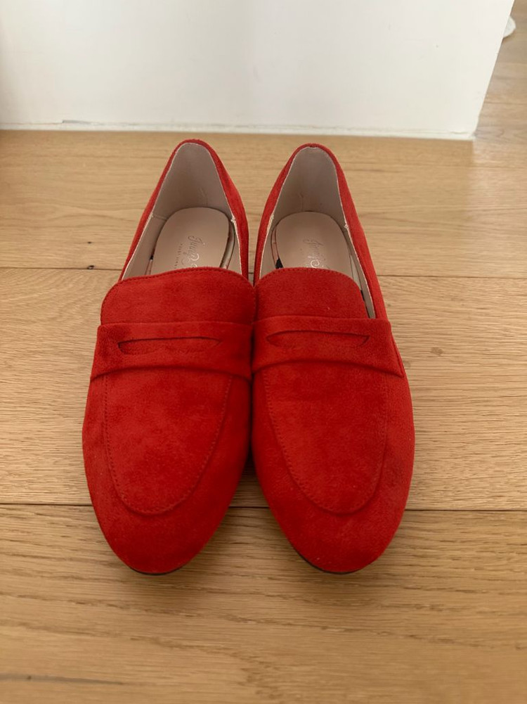 지니킴 레드 스웨이드 3cm 키튼힐 로퍼 240사이즈 새 제품입니다. 3cm 굽이라서 편안하고 레드 스웨이드가 연청, 블랙 슬랙스, 화이트진에 포인트가 되어요. 240사이즈이고, 집 현관에서 시착만 하고 보관했습니다. 리얼 스웨이드는 아닌데, 컬러와 질감이 예쁩니다. 택비 별도 1만원에 판매합니다.
