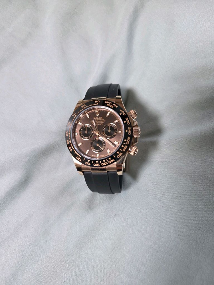 롤렉스 데이토나 러버 스트랩 3대장 피카츄 고스트 초코토나 중 하나입니다. 로즈골드 대표모델 가장 싫증안나고 오래차기 좋습니다. 20년 4월 모델입니다. 보증서 포함 풀세트. 국내백화점 스탬핑 자주 안찼지만 아무래도 골드모델 특유의 잔기스는 있습니다. 큰 상처없도 나머지 상태는 좋습니다. 1년에 몇번 안찼을겁니다. 0lo 48오삼 구3o4 여의도더현대 목동현대 직거래 가능합니다.