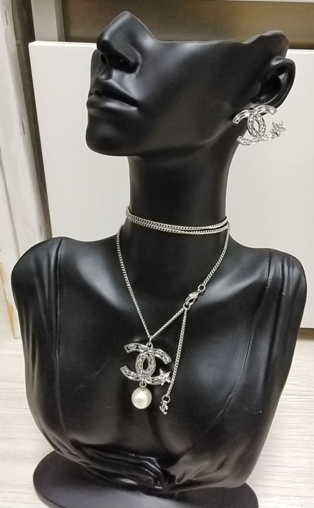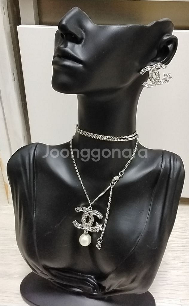 샤넬 시그니처 CC 로고가 포인트인 실버 펜던트와 귀걸이 세트예요. 크리스탈 장식이 고급스럽고 클래식한 디자인으로 데일리 착용하기 좋아요. 새상품입니다. 제품발송은 마지막 사진처럼 나가요~♡ 선물하시기에도 너무 좋아요♡ 거래특성상 구매후 교환 반품 환불 불가하오니 신중한구매 부탁드립니다