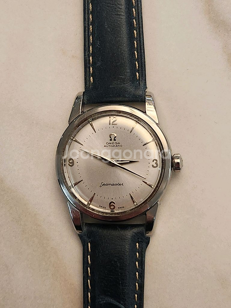 오메가 빈티지 1948 씨마스터(남녀 공용) 70여년 세월이 지났어도 오버홀이랑 다이얼 복원을 하여 새것처럼 예쁘고 잘 돌아갑니다. 특히 이 모델은 최근 몇년전에 1948 헤리티지 복각 한정판으로 다시 나왔던 모델인 만큼 멋찐 시계입니다. 오토매틱 단풍 무브입니다. 케이스 크기는 빈티지스럽게 34미리이고 너무 크지도 작지도 않은 사이즈 이고 손목이 가느신 분에게 더 잘어울립니다. 물론 여성분들에게도 잘 어울릴 사이즈 입니다.