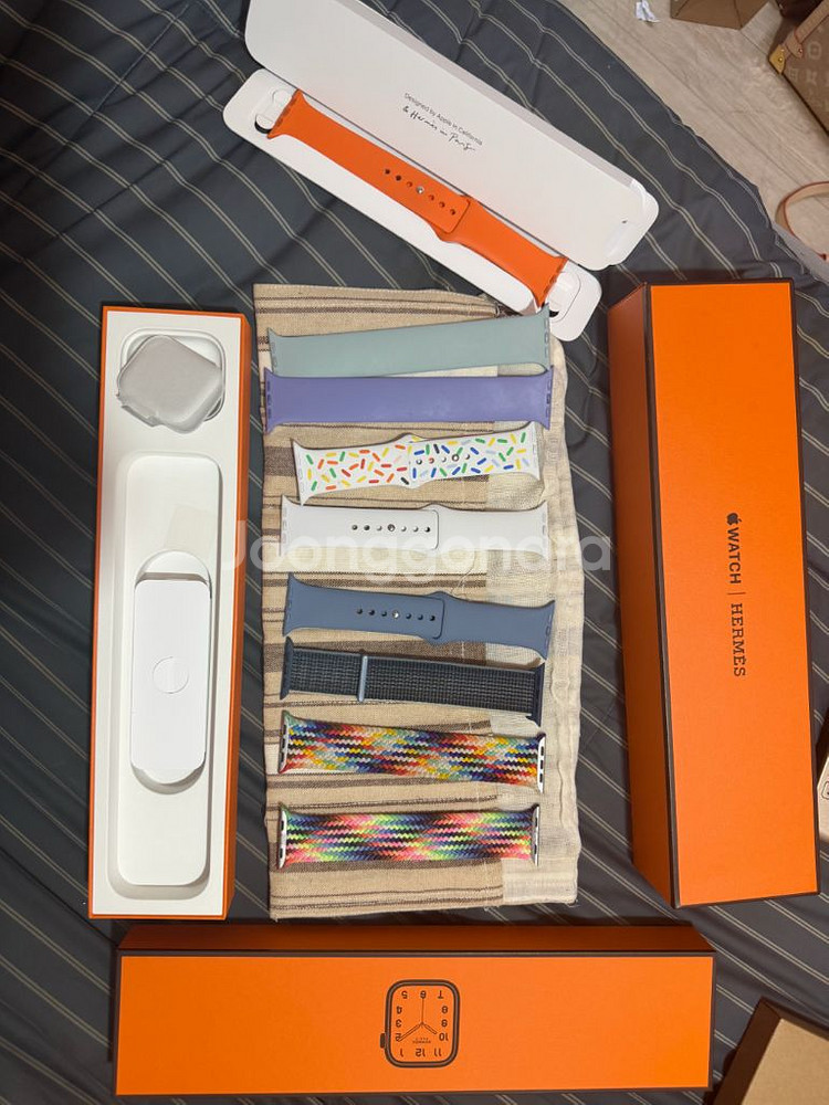 애플워치 에르메스 7 45mm 입니다. 박스 풀구성이고 에르메스 오렌지 실리콘 밴드도 별도 판매 안하고 사용감만 좀 있구요. 워치 자체는 스테인레스 재질 자체 미세기스같은것 빼고는 액정도 본체도 멀쩡합니다. 단지 배터리가 79%라 이제 리퍼시간에 들어갔네요. 일단 1일 실사용은 항상 가능해서 지금 당장 리퍼 안하고 업리퍼 소식 들리시면 들어가는걸 추천드립니다. 사진에 있는 모든 스트랩은 애플 정품 스트랩이며 시계에 장착되어있는 가죽스트랩만 사제스트랩입니다.(나비디버클 장착) 이유있는 네고는 언제나 가능하며 가격은 당일배송비 포함 가격으로 거리 또는 배송방법에 따라 당연히 네고 가능합니다. 당일배송은 별거 없고 그냥 제가 차타고 배송해드리는지라 제주도나 섬마을같은 배를 타야 하거나 하루 1-2번만 길이 열리는 등 차로 접근이 어려운 곳은 불가능 한 점만 미리 알아주세요 😂 대신 택배로 전환하기때문에 당연히 네고 해드리구요. 지금은 업데이트 중이라 시계 사진을 자세히 촬영 못하기에 채팅문의주시면 원하는 사진 찍어드리고 있습니다. 문의주세요 :)