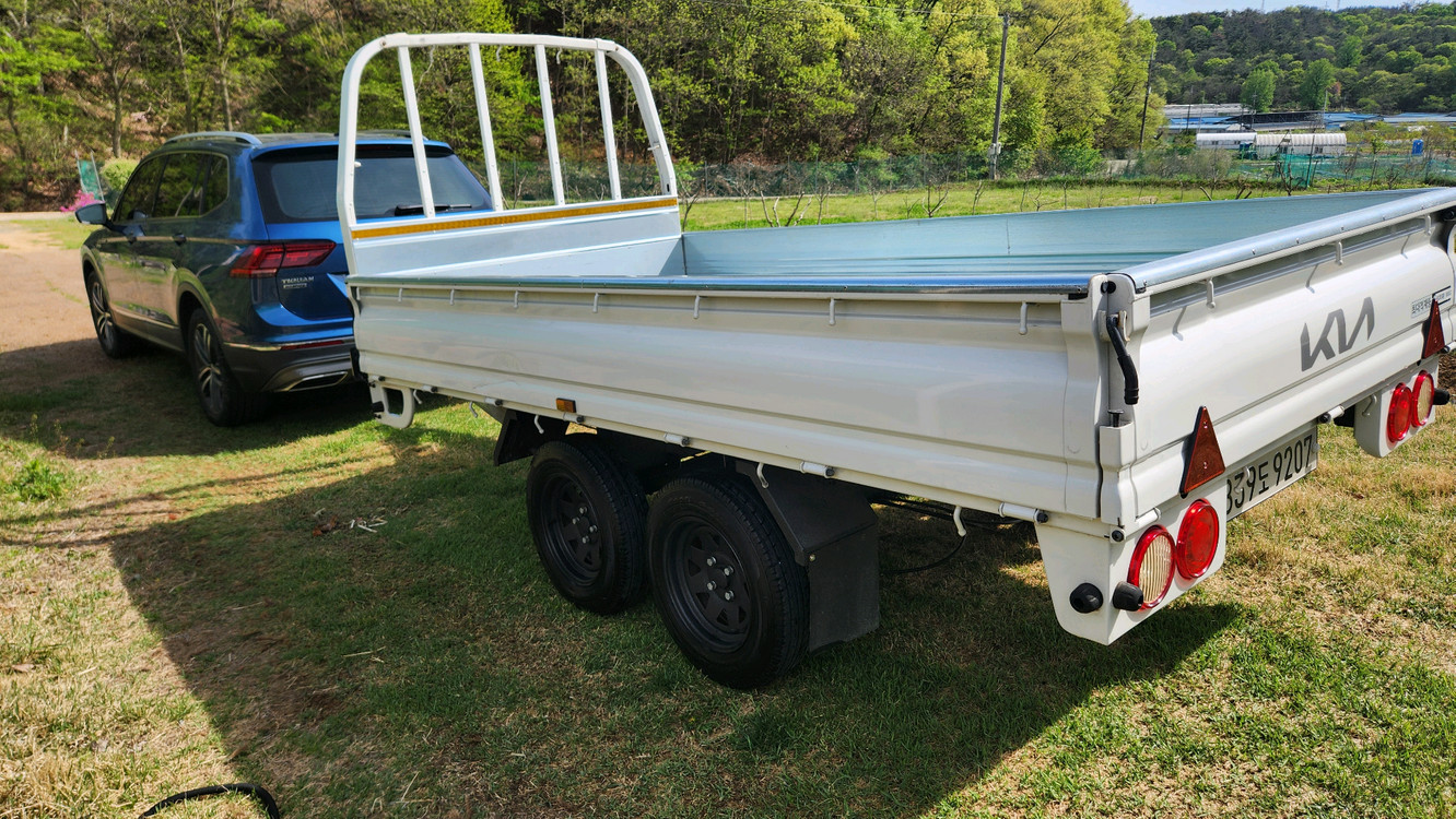 화물트레일러 2축 판매합니다. 고하중이라 농기계 운반과 농장에 필요한 물건 운반에 유용하게 사용하였습니다. 어쩌다가 쓰는 화물차 보다는 관리비 면에서 유용하다고 생각하며, 관성브레이크, 모든 등화 , 사이드 양호하며 비 안맞는 전용 차고지 보관 중입니다. 견인볼 50mm, 13핀 사용 적제함 고리 8개 길이는 3,120mm 울산 북구 사팔사칠 칠육일이