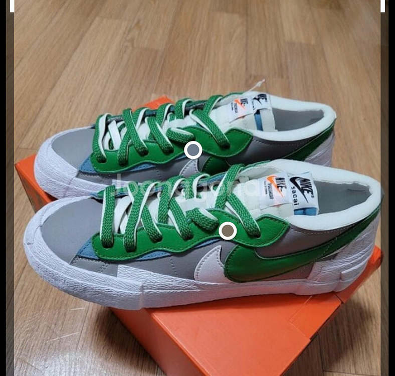 나이키 사카이 블레이저 로우 판매해요 신발과 함께 네이비색, 회색 여분끈이 들어있어요 사진에 보이는 그대로의 상태이고,컨디션 너무 좋아요 블레이저 특성상 발이 편하고 접지력도 좋고 칼발이나 발볼넓으신분들도 신기 편해요 신발에 관심 있으시면 편하게 문의주세요 직거래 선호하고 편의점 반택 가능해요