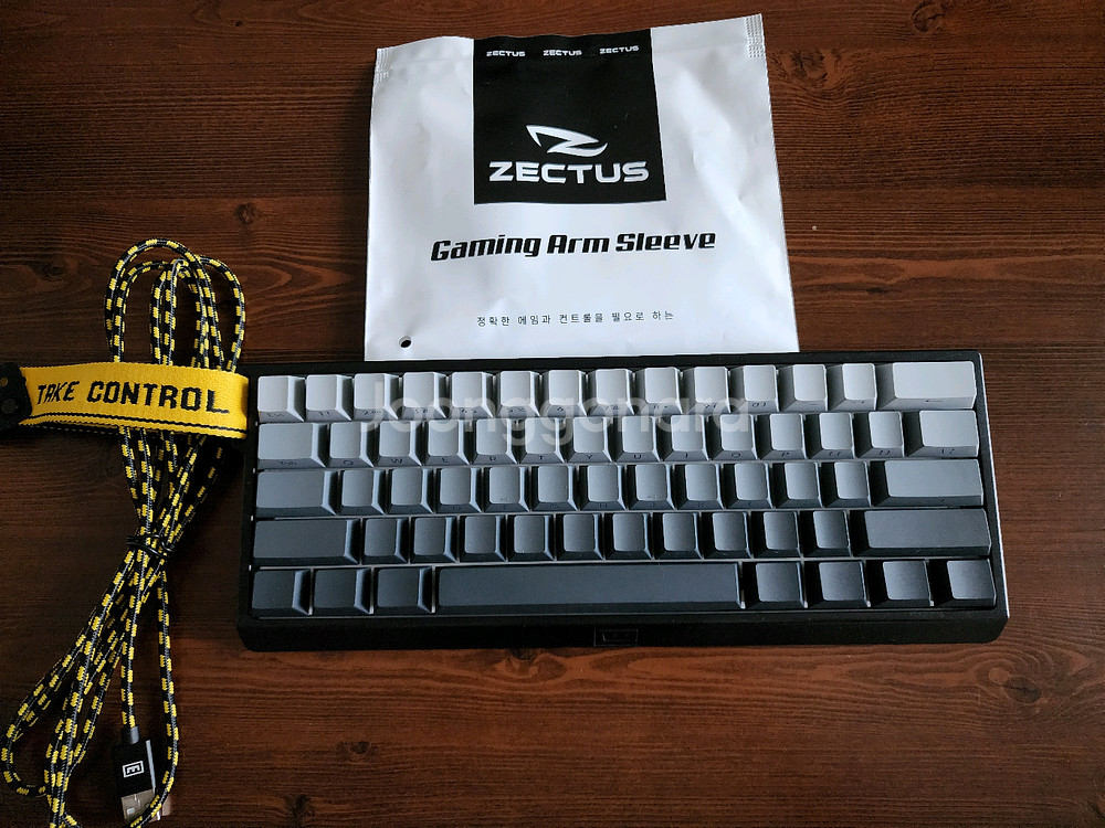 우팅 60he 다음에 출시된 우팅 60he + 입니다 한 달 좀 안되게 사용했습니다. 키보드 무척 깨끗합니다 PBT소재 백라이트 그라데이션 키캡으로 교체했습니다 이외에 변경사항은 없습니다 서비스로 게이밍 암슬리브 팔토시 드립니다(1회 착용) 팔토시 길이가 너무 길어 팔꿈치까지 오게 줄였었습니다 L사이즈