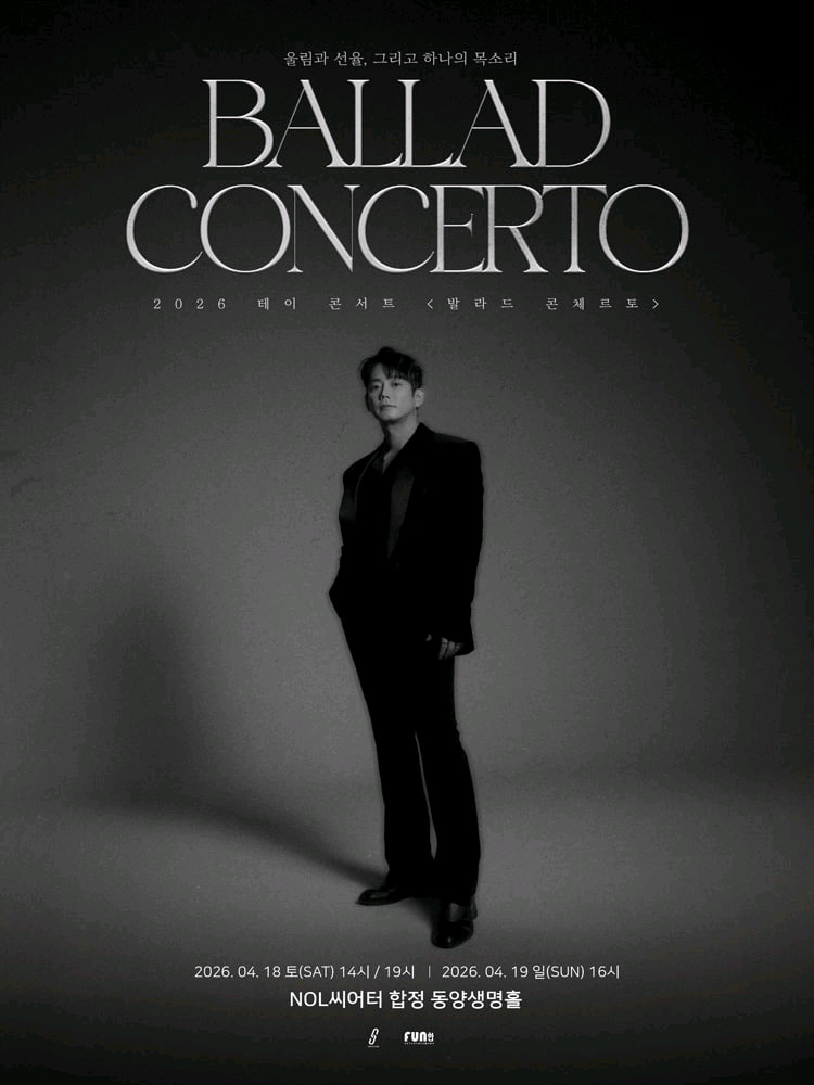 2026 테이 콘서트 <발라드 콘체르토(Ballad Concerto)> NOL씨어터 합정 동양생명홀 2026.04.18 토 14시, 19시 2026.04.19 일 16시 무대 인근 좋은 자리로 시야 걱정 없이 공연을 편안하게 관람하실 수 있습니다.