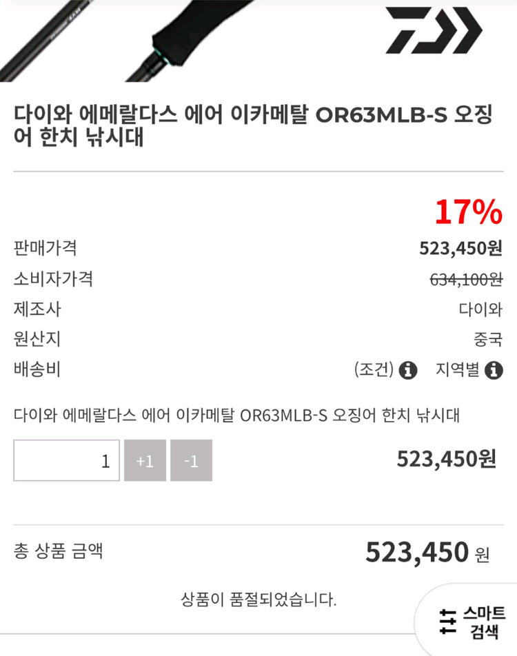 개인정보(거래정보)를 주고받는 행위는 사기에 노출될 수 있으므로 즉시 중고나라로 신고해 주세요다이와 에메랄다스 이카메탈 에어 OR63MLB-S(베이트) 작년 5월에 구매하여 1회사용(2시간정도) 한치 걸어보지도 못 하였습니다. 날씨 거리 등, 한치 낚시를 못 다닐 것 같아서 판매합니다. 2대(쌍포) 일괄 80 직거래도 환영입니다 지역 세종, 청주 o1O3O334112