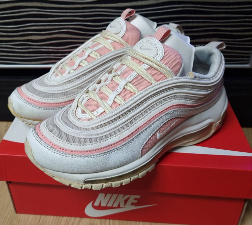 nike 나이키 에어맥스97 코랄 핑크 921733-104 운동화 입니다. 택사이즈는 240입니다. 235~240 신는 분들 잘 맞아요. 코랄 핑크 컬러 예쁘구요. 에어맥스97 특유의 물결라인 멋스러워요. 원채 유명한 모델이라 특별한 설명은 필요 없을 것 같아요 . 사진에서 처럼 전체적으로 컨디션 괜찮아요. 세탁완료. 바로 신으시면 됩니다. 중고라서 물건에 큰 하자없으면 교환 환불 불가합니다.