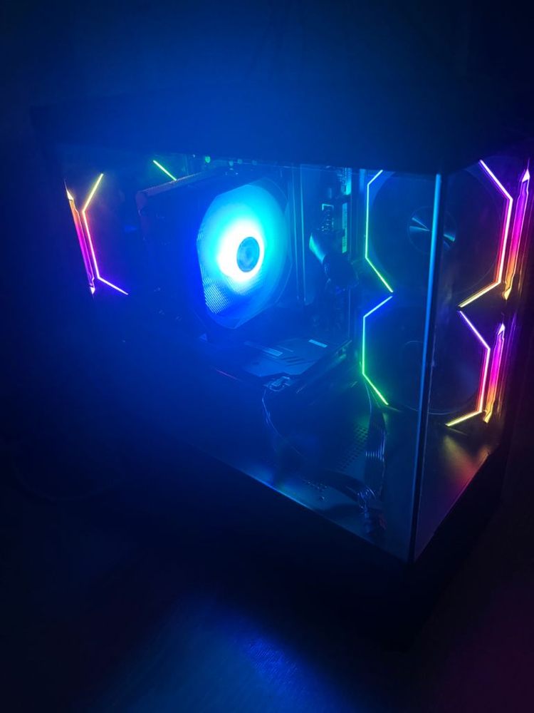 컴퓨존 4월 1일 새부품 주문 조립 성능 테스트 배그 160~170 프레임 케이스 쿨러 추가 장착 보시는것 처럼 RGB모듈로 이쁘게 세팅해놨어요 저렴한 가격으로 감성까지 챙기세요 라이젠 5600 보드 a520 SSD 500기가 램 16기가 파워 600w 그래픽 rx5600xt 쿨러 써멀 어쎄신