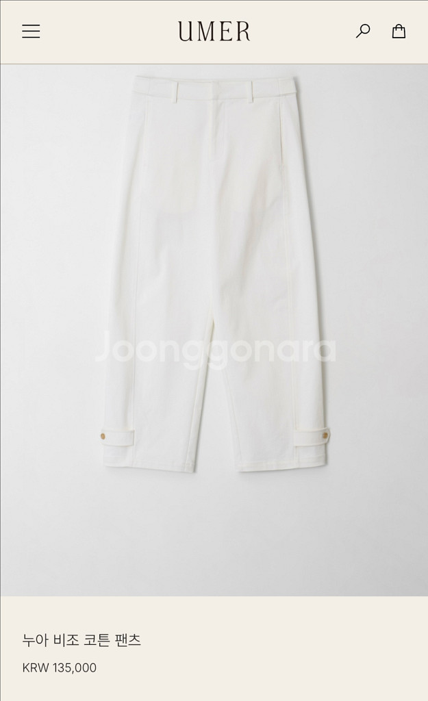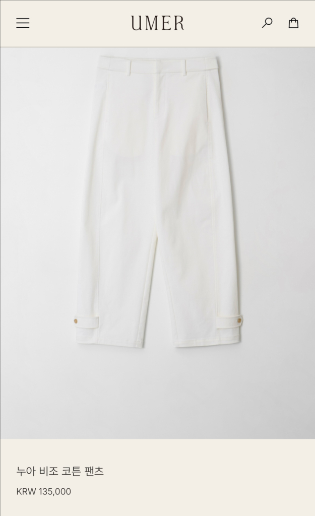 유메르 누아 비조 코튼 팬츠 아이보리 1사이즈 새상품