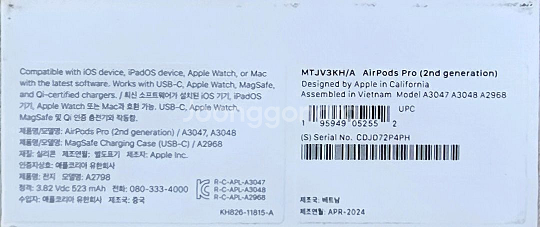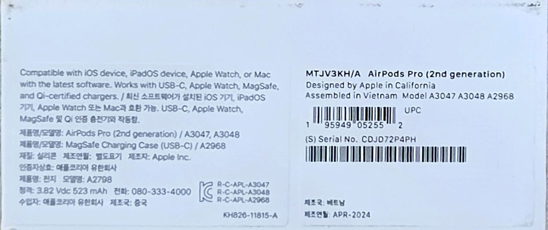 Apple AirPods Pro 2nd generation with MacSafe Charging case (USB-C) 개봉하지 않은 제품입니다. 💸 가격 : (18만 ) 👉 쿨거래 시 네고 가능 📦 직거래 / 택배 모두 가능 📍 (직거래 목포효성요양병원 앞) ❗️중고거래 제품 특성상 교환/환불 어렵습니다❗️
