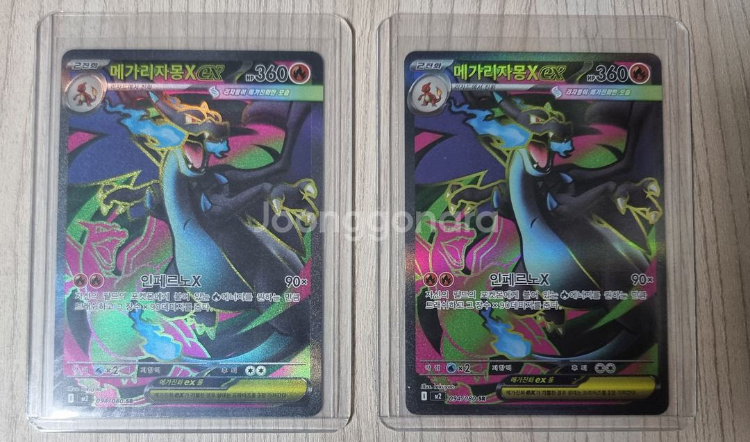개인정보(거래정보)를 주고받는 행위는 사기에 노출될 수 있으므로 즉시 중고나라로 신고해 주세요포켓몬카드 메가리자몽x ex sr 팝니다 개봉후 슬리브 탑로더 보관카드 2장 일괄 29,000원 1장 구매시 17,000원 대전직거래 가능 택배비3,500원 반값택배 1,800원 교환환불네고 불가