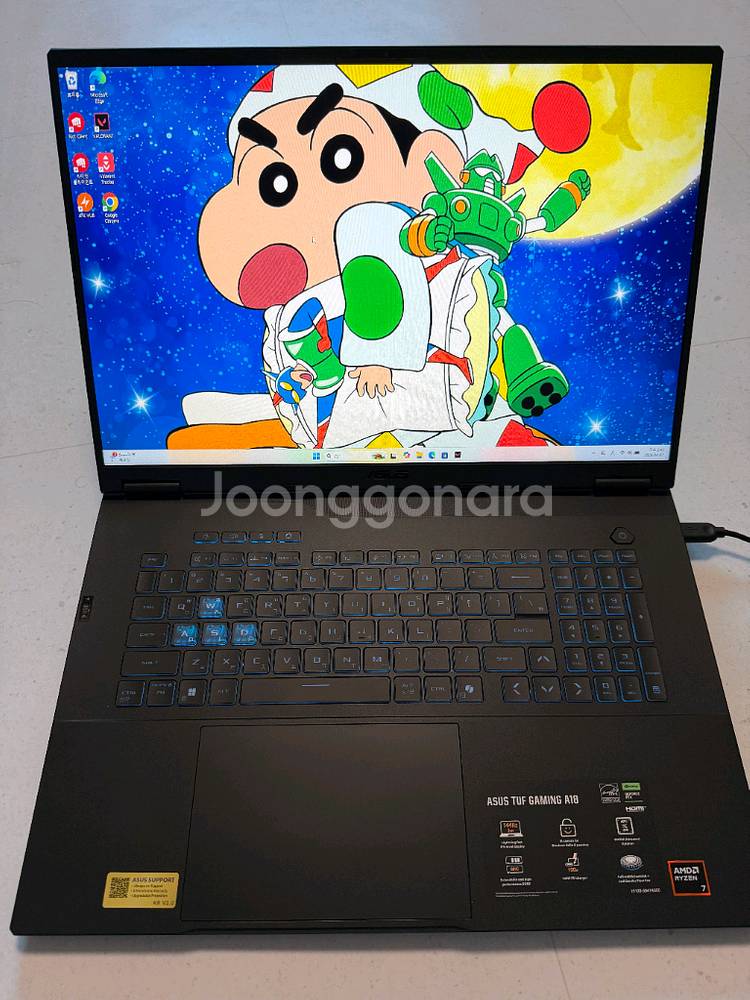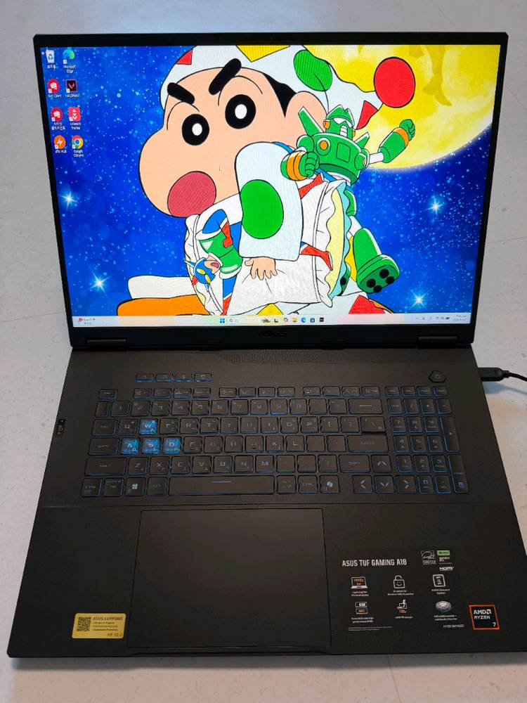 ASUS TUF A18 RTX5070 정가 260만원 구매가 190만원 GPU : RTX 5070 CPU : 라이젠7 260 SSD : 512G RAM : 16GB WIN11 HOME 정품 18인치 1920×1200 144hz 보증기간 2026.12.26 까지 배터리 효율 99.8% RTX 5070이 달려있는 고성능 노트북입니다 2025.12.26 물건 받은후 대략 3개월정도 사용했습니다 화면에 먼지 좀 있는거 빼고는 외관상 하자 없고 게임도 발로란트밖에 안 해서 노트북에 부담이 많이 안 가는정도로 조심조심 썻습니다 충전기 포함 풀박이고 구매의향이나 질문 사항은 챗으로 문의 주시면 됩니다 평일에는 가지러 오셔야 되는데 주말에는 파손면책 동의시 택배or청주 직거래 가능합니다 구매후 환불/반품 안됩니다 - 적당한 네고 가능 -
