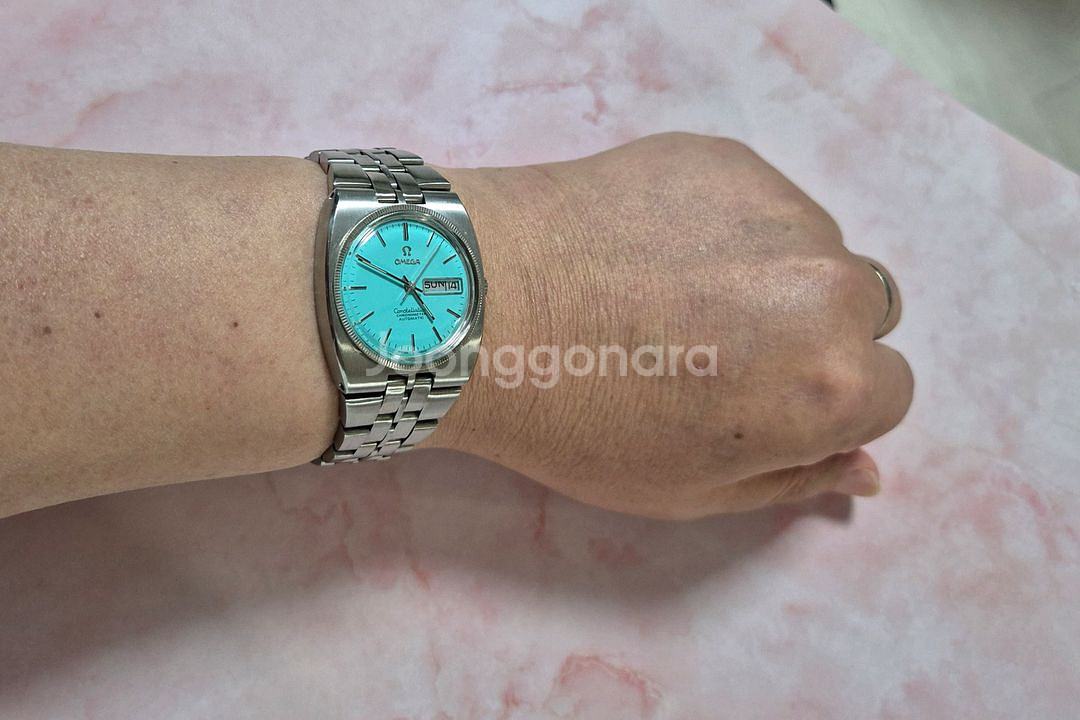 안녕하세요? 이번에 소개드릴 제품 은 오메가 컨스틸레이션 자동 메탈 시계로 1970 년대 의 최고 상위의 드레스워치 라인 이었으며, 특히 크로노미터 급 무브먼트 사용으로 최고급 기종으로 자리매김 했던 시계 입니다. 특히, 이시계는 플루티드 이너 베젤이 18K White Gold 로 되어 있어서 더욱더 럭셔리 합니다. 원형 티파니 블루판 원산지 ; SWISS 작동 방식 ; 기계식 자동 시계 케이스 사이즈 ; 약36*40*11미리 (가로*세로*두께) *단,용두 제외 *단, 재는 위치와 재는 방식에 따라 다소 차이는 존재 할수 있습니다. 시계줄 길이 ; 약18.4센치 /시계줄 길이 늘리실분 별도 상담요망 시,분,초 3핸즈, 미네랄 글라스, 날짜,요일,18K White Gold 플루티드 베젤, 올 스텐레스 스틸 SWISS made Auto 무브먼트 시계 상태 ; 1970년대 ~1980년대 까지 주로 생산 출시 되었던 시계로 빈티지 제품 이며,판매를 위하여 다이얼은 티파니 블루색으로 커스텀 하였고, 전체적으로 폴리싱 및 오버홀 점검 완료 하여 외관상태 아주 깔끔하고 깨끗 하며 작동 성능 매우 우수합니다. 전체적인 상태는 A~ *구성품은 없으나 사제 케이스 에 넣어 보내드립니다. *빈티지 시계는 방수에 취약 하므로 물에 조심 하셔야 합니다. *빈티지 시계는 특성상 사이즈 오차 시간 편차 낡음 탈색 등의 사유가 발생 할수 있습니다. 따라서, 반드시 빈티지 시계를 잘 이해 하시고 조예가 깊으신분 께 추천 드리며, 특히 요즘 출시 되는 상품 수준의 품질을 추구 하시는 예민하시고 까다로우신 고객님 께서 는 구매 를 자제 해주실것 을 간곡히 부탁 드립니다. *본 상품은 빈티지 제품으로 ~ *중고페이 안전결재 환영 합니다 ~