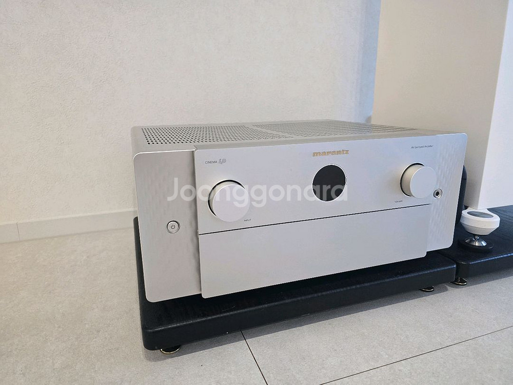 마란츠 시네마40입니다 작년에 2차구매했습니다 거의 거치만 해서 컨디션 매우 좋습니다 박스는 없고 리모컨+보정기+전원케이블입니다 180만 모니터오디오 실버 c250 7세대 센터스피커입니다 마찬가지로 거의 듣지 않아서 컨디션 매우 좋습니다 (커버 포함) 70만 일괄하시면 230에 바로 드리겠습니다 네고는 어렵습니다
