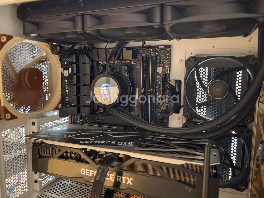 직거래만합니다!!!! 지역 인천 -> 정확한 위치 구매시 알려드립니다 메인보드 : ASUS TUF Gaming X670E-PLUS WIFI STCOM CPU : AMD 라이젠9-5세대 7900X 램 : PATRIOT DDR5-5600 psd532g56002 32gb x 2 / 하이닉스 A다이 - 듀얼 64b 그래픽카드 : 갤럭시 갤라즈 4080 cpu 수냉 쿨러 : 크라켄360 (플러스아님) 파워 : SuperFlower SF-1000F14XG LEADEX VII GOLD ATX3.0 (1000W) 케이스 : 다크플래시 dlx21 / 시스템쿨러 2개, 녹투아 시스템쿨러 nf a 14 4개 - 시스템 쿨러 총 6개 **세부사항** 램 하이닉스A다이 케이스에 녹투아 시스템쿨러 4장 **읽어보세요** 메인보드, 그래픽카드, 램, 수냉쿨러, 파워는 박스 있습니다 원하시면 같이 드려요 직접 자차로 싣고 가져가셔야 합니다 고성능 AI 돌리는거 아니면 거의 하이엔드 작업용 pc라고 생각됩니다 LED감성 싫어해서 그냥 성능만 생각하고 맞췄습니다 **주의사항** SSD포함아닙니다 sn850 1tb추가시 2,950,000 4080 super아닙니다 케이스 위쪽 usb3.1 포트 없습니다 천천히 모든 글 다 읽고 질문주세요