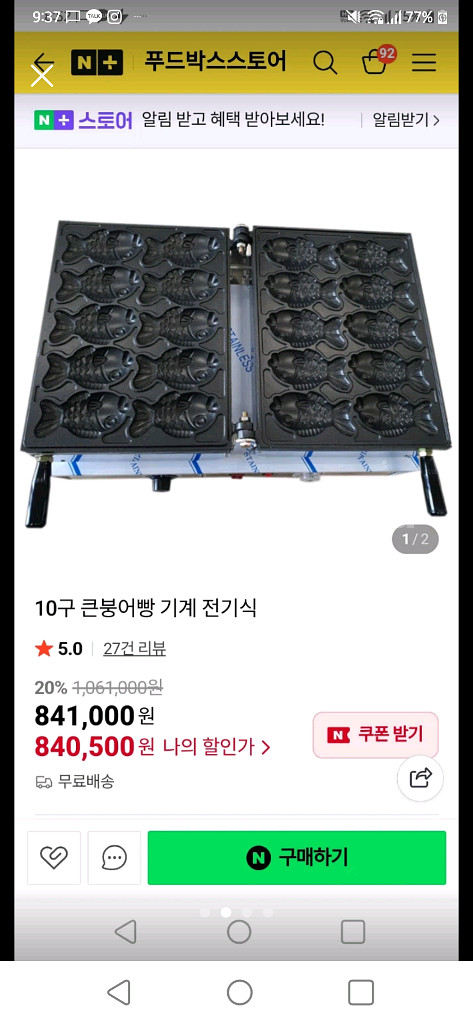 개인정보(거래정보)를 주고받는 행위는 사기에 노출될 수 있으므로 즉시 중고나라로 신고해 주세요몇번안쓰고 보관중입니다. 이뿡이붕어빵으로 귀여워요. 도로정비로 가게앞공간이없어지게되서팝니다..ㅠ코팅좋아요.