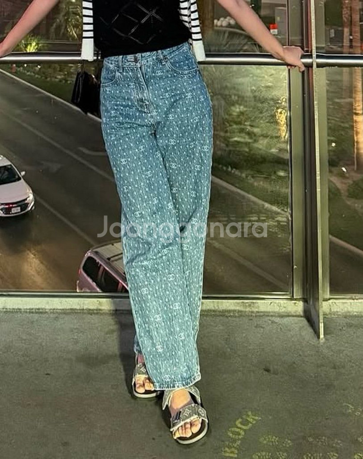 개인정보(거래정보)를 주고받는 행위는 사기에 노출될 수 있으므로 즉시 중고나라로 신고해 주세요샤로고 패턴이 돋보이는 와이드 데님 팬츠예요 청량한 연청 컬러와 편안한 와이드 핏으로 어디에나 매치하기 좋아요 사진 속 모델처럼 캐주얼하게 연출해보세요 데일리룩으로 활용하기 좋은 아이템이랍니다