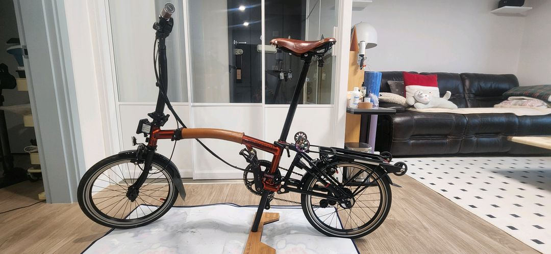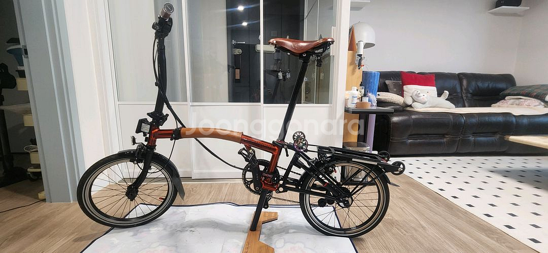 개인정보(거래정보)를 주고받는 행위는 사기에 노출될 수 있으므로 즉시 중고나라로 신고해 주세요접이식 자전거 판매합니다. 브라운 가죽 안장과 핸들 골드 프레임의 클래식한 디자인이에요. 사용감은 있지만 기능상 문제없이 잘 작동합니다. 화면에서 브롬톤 거치대는 제외 입니다