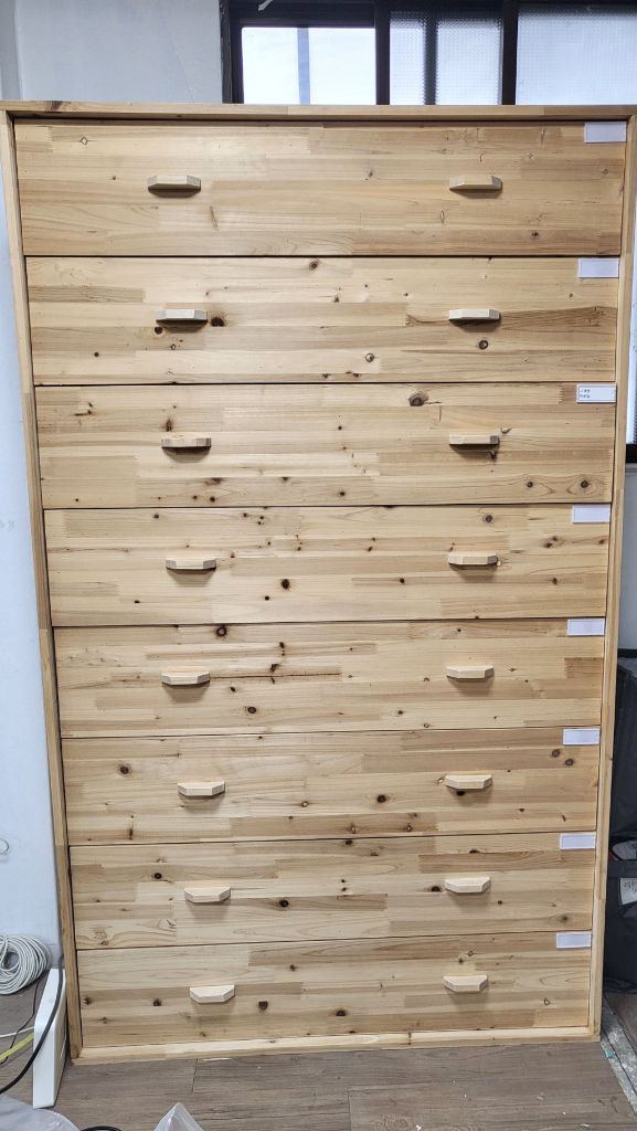 삼나무 원목으로 직접 제작한 대형 서랍장 판매합니다 사이즈: 가로 120*높이 190* 깊이 50cm 재질: 삼나무 원목 특징: 공방에서 직접 제작하여 튼튼하고 수납공간 매우 넉넉합니다 공방,카페,매장 인테리어용으로도 잘 어울리고 매우 높은 서랍이라 왠만한 수납 모두 정리됩니다 (서랍 일부 스티커 작업해서 사진 참고부탁드립니다) 삼나무향이 나는 서랍이라 아이들 방에서 쓰기에도 좋습니다 *크기가 커서 직접 가져 가셔야 합니다 *용달차 필요합니다 (경기도 부천시 오정구)