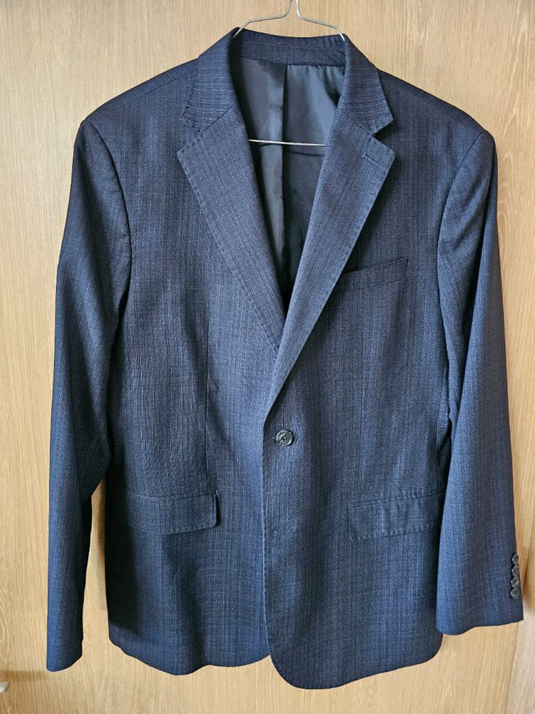 크레뮤 브랜드의 남성 정장 자켓이에요 사이즈는 105이며, 네이비 색상에 은은한 스트라이프 패턴이 고급스러워요 폴리에스터와 레이온 혼방 소재로 가볍고 편안하게 초여름까지 착용 가능해요 깔끔한 디자인으로 격식 있는 자리나 비즈니스룩으로 활용하기 좋아요 새거같은 컨디션입니다 부산에서 직거래가능합니다