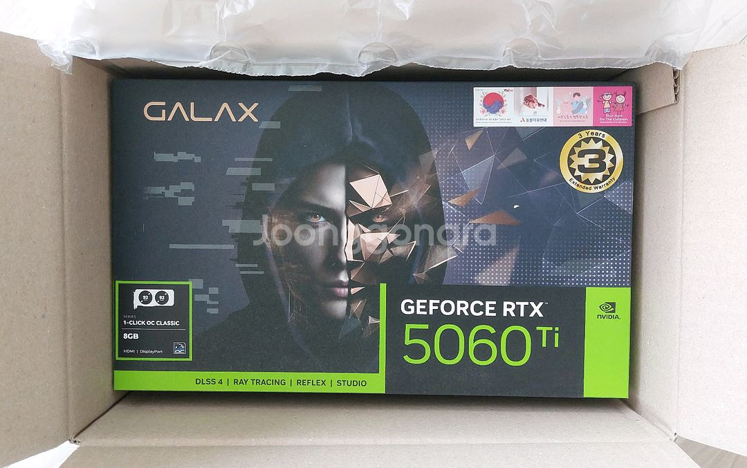 미개봉 갤럭시 GALAX RTX 5060 Ti BLACK OC Classic D7 8GB 신품을 우체국 택배비 포함 504,000원에 선입금 택배거래로 판매합니다 (환불 및 반품 불가 조건, 추가 인증사진 가능) 미개봉 스티커 붙어 있는 새제품이며 시리얼상 제조월은 2026년 2월입니다 에누리는 사양하고 안전거래는 안하며 선입금 택배거래 가능하신 분은 0 1 0 5 8 2 7 0 7 3 9 로 문자 부탁드립니다 (직거래시 강원도 원주시 지정면 기업도시내에서 50만원에 판매합니다)
