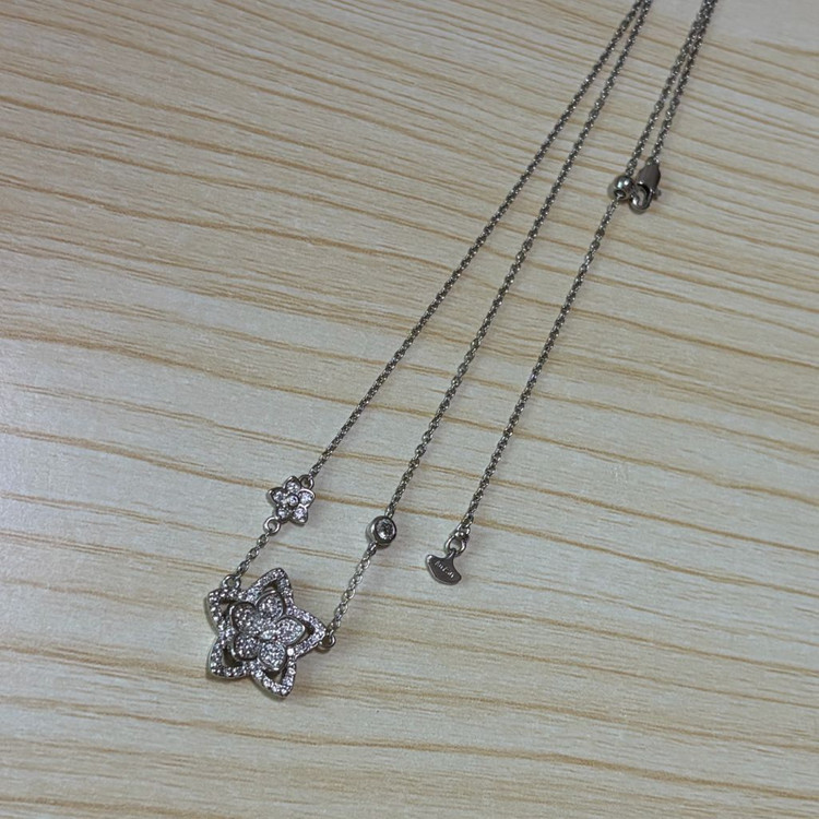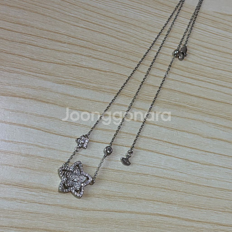 그라프 더블 플라워 목걸이 판매합니다. 정 동일 볼로 길이 조절 가능 사진 보시다시피 퀄리티 좋아요 더 비싸게 주고 구매했는데 보관만 해서 판매합니다. 소장 가치 충분해서 안 팔리면 소장할거예요. 착용 횟수 없는 새상품이지만 보관중 생긴 미세 찍힘, 기스 등 있을 수 있어요. v골드+18k도금 소재로 알러지나 변색 거의 없어요. 교환, 환불 ❌ 정품 문의 ❌ 구매하실 분만 연락주세요.