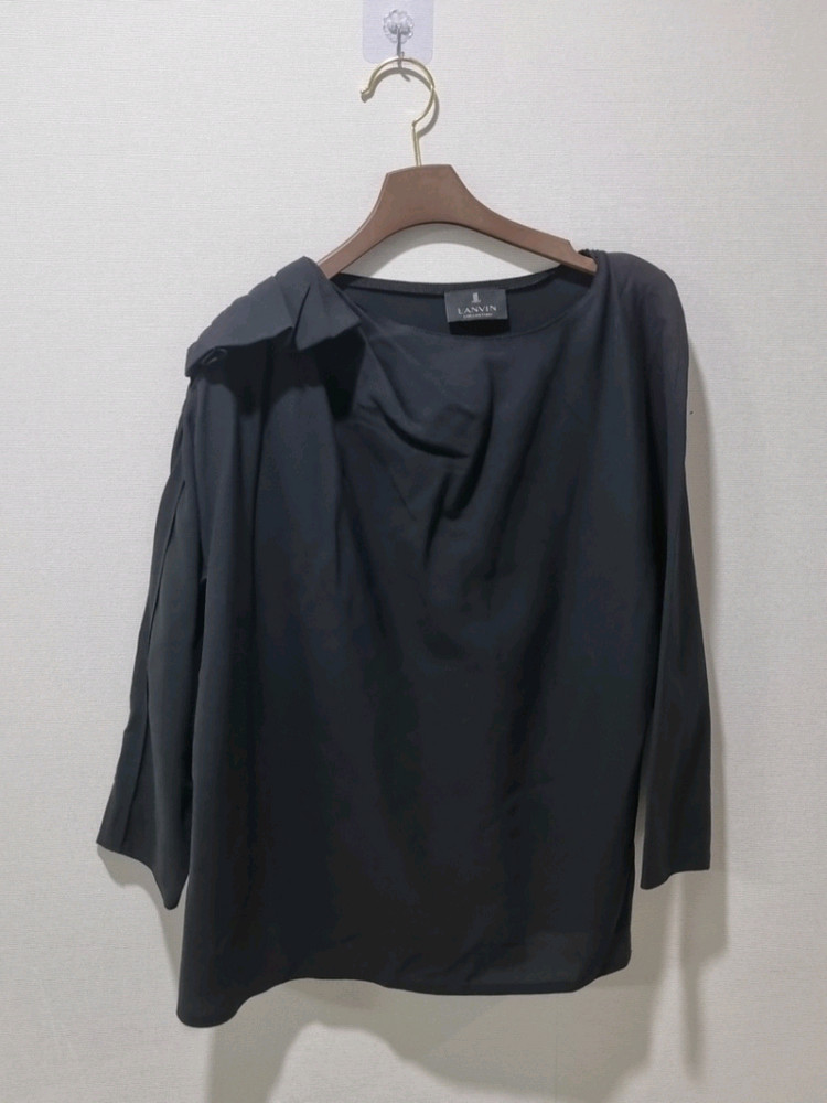 랑방 컬렉션 실크 블라우스 네이비 셔링 포인트랑방 컬렉션 실크 블라우스입니다. 어깨 셔링 디테일과 자연스러운 드레이프 핏이 고급스럽고 여성스러운 느낌이에요. 얇고 부드러운 소재로 착용감 좋고, 단정하면서도 포인트 되는 디자인입니다. 가단 53 / 총장 60 82사이즈 (국내 55~66 추천) 사용감 크지 않고 전체적으로 상태 좋습니다. 실물이더이뻐요