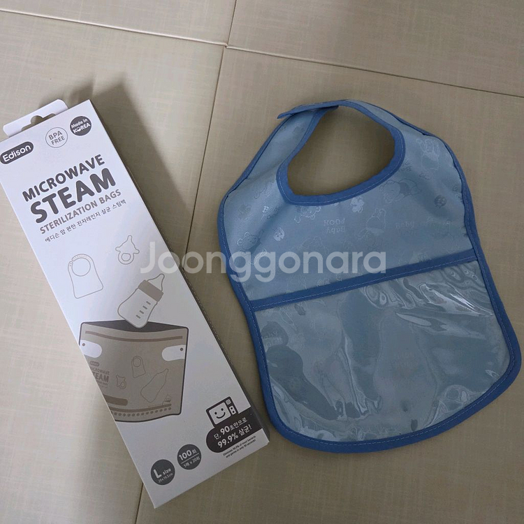 (택비만받을게요) 아기 턱받이+살균 스팀백 새거