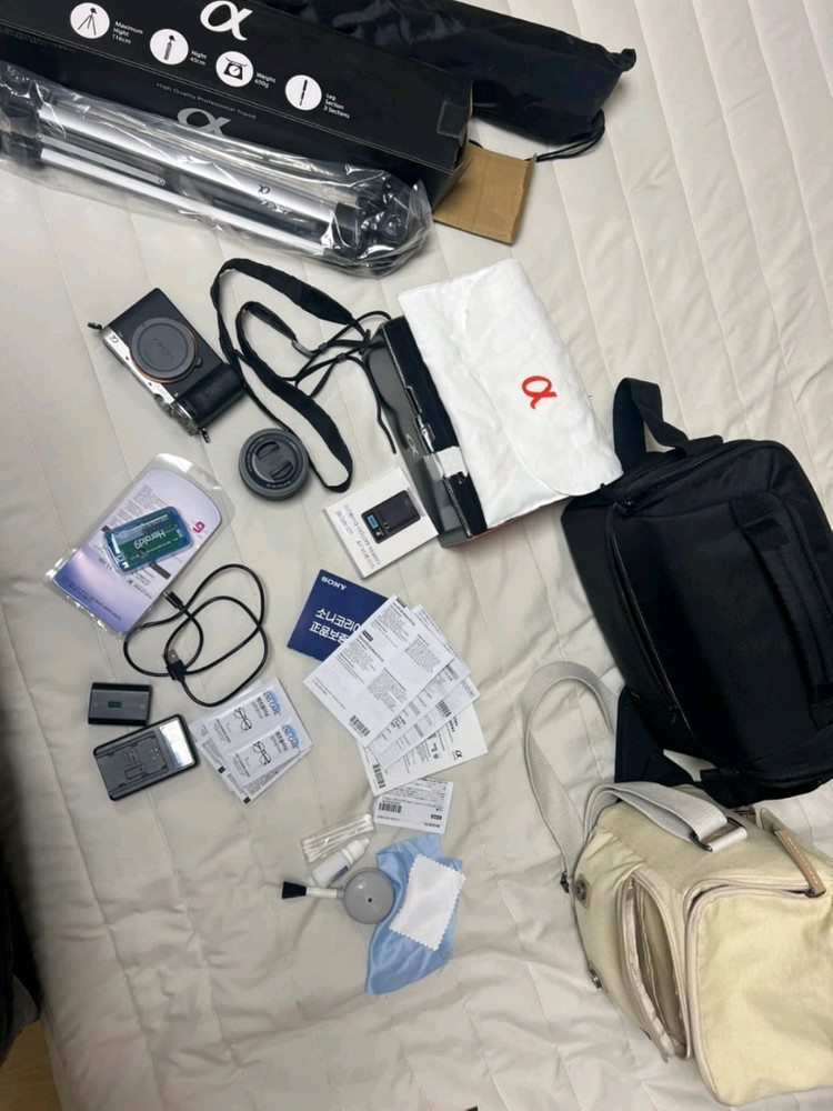- 소니 카메라 가방 5회정도 사용 (검정색만 드립니다) - 소니 카메라 삼각대 미사용 - 번들렌즈 fe4-5.6 / 28-60 - 멀티 카드 리더기 - 기본 카메라 청소도구 - 각종 설명서 및 보증서 - 배터리 1개 - 목걸이형 스트랩 카메라를 자주 들고다니지 않았어서 사용도 많이 안했습니다 떨어뜨린적도 없어서 흠집 없습니다 고로 상태는 너무 좋습니다 액정필름 붙혀뒀고 sd카드 미포함입니다 구성품 전부 다 해서 192 판매합니다 매입가보다 조금 더 받고팝니다