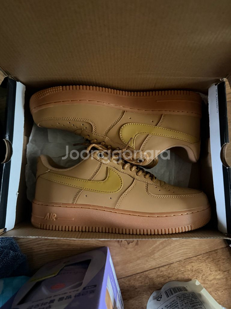 개인정보(거래정보)를 주고받는 행위는 사기에 노출될 수 있으므로 즉시 중고나라로 신고해 주세요에어포스1 로우 베이지 컬러에 옐로우 포인트가 들어간 깔끔한 디자인이에요. 박스 포함 상태 좋은 중고 제품입니다.