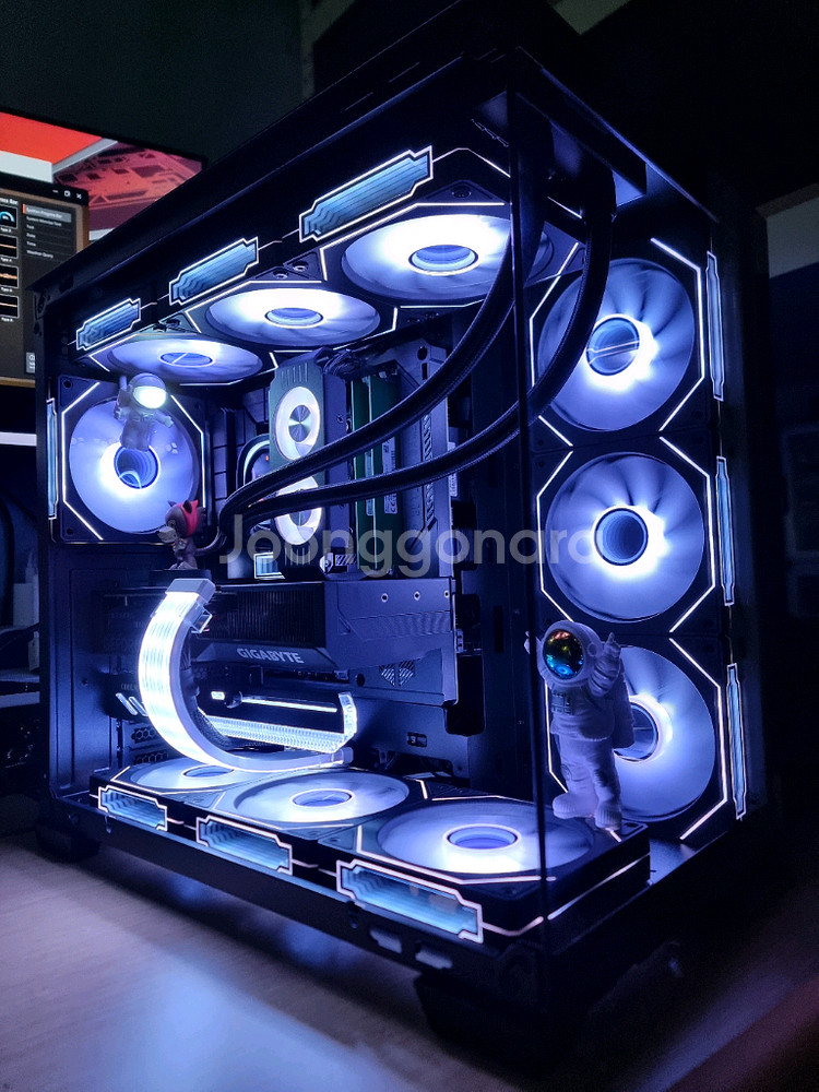 CPU >>> 인텔 코어 i7 14700KF 랩터레이크 메인보드 >>> MSI TUF GAMING B760M-BTF WIFI 그래픽카드 >>> GIGABYTE GeForce RTX 4070 Ti SUPER 쿨러 >>> [ID-COOLING] FX360 LCD 데이븐 램 >>> [SK hynix] SK하이닉스 DDR5 PC5-44800 16 * 2 = 32GB (A다이) ssd >>> [SK hynix] Gold P31 M.2 NVMe 2280 ( 2TB ) 파워 >>> FSP HYDRO PRO 800W 80PLUS 케이스 >>> [몬스타기어] 몬스타 가츠 Y724 아쿠아 BTF [미들타워] [블랙] O.S >>> 윈도우 11 HOME 구로구 0I0 육칠82 53ll 예약금 5만원 거시면 거리보고 가져다 드릴 수 있습니다. 게임과 작업 모두 고사양으로 사용 가능한 컴퓨터 입니다. 램 하이닉스 a다이 램이고 ssd도 하이닉스 p31 전부 상급제품 사용했습니다. ssd 2tb라서 넉넉하게 사용하시리라 생각됩니다. 메인보드 btf로 전면에 선없이 깔끔한 메인보드입니다. 메인보드 와이파이와 블루투스 지원합니다. as는 그래픽카드 기준 27년 4월까지이고 cpu는 5년짜리라서 훨씬 넉넉하게 남아있습니다. as와 컨디션 문의 안주셔도 됩니다. 쿨링기능 측면과 하단은 리버스로 흡기 상단 후면 배기이고 램 쿨러 달아서 오버 하셔서 쓰실분들도 성능 저하 없이 사용 가능하실겁니다. rgb 튜닝도 컨트롤러 달아서 리모컨으로 간편하게 모드 변경 가능하고, 현재 아이들시에는 저소음 모드로 조용하게 셋팅해놨습니다. 사진상에 나와있는 그대로 드립니다. 궁금한건 문의 주세요.
