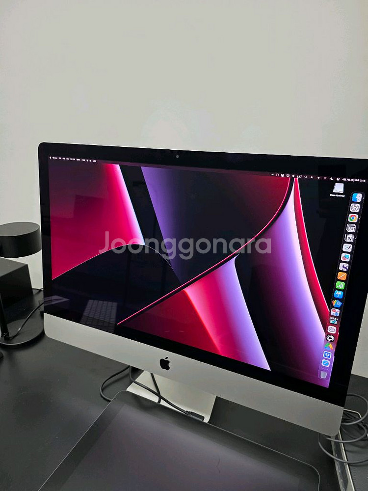 Apple iMac 27인치 Retina 5K 디스플레이 판매해요 2019년 4월 제조 상품이고 27인치 Retina 5K 디스플레이를 탑재했어요 3.0GHz 6코어 Intel Core i5, 8GB RAM, 1TB Fusion Drive 사양이에요 Thunderbolt 3 포트 2개와 USB-A 포트 4개, 10/100/1000BASE-T 이더넷 포트가 있어요 박스있고 본품과 전원 케이블 상태 깔끔합니다. 많이 사용안하구 인테리어로 두었었어요 풀배열 화이트 매직키보드 같이 드립니다 매직마우스는 없어요 고양시 원흥동에서 거래가능