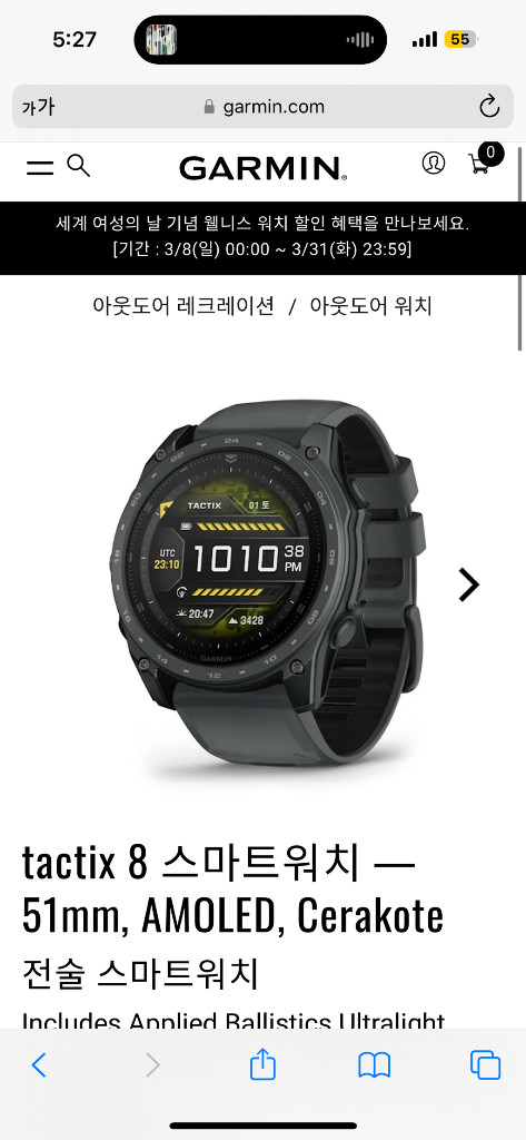 51mm AMOLED 케라코트 전술형 스마트워치예요. 블루 스포츠 밴드 포함되어 있고 상태 양호합니다. 실용적인 전술형 워치로 다양한 기능 활용 가능해요. 구매한지 한달이고 실착용 5회입니다. 원가 250만원이고 가격 조정 가능합니다. 만나서 직거래도 가능합니다. 품질 보증서 영수증 박스 전부 그대로 있습니다.