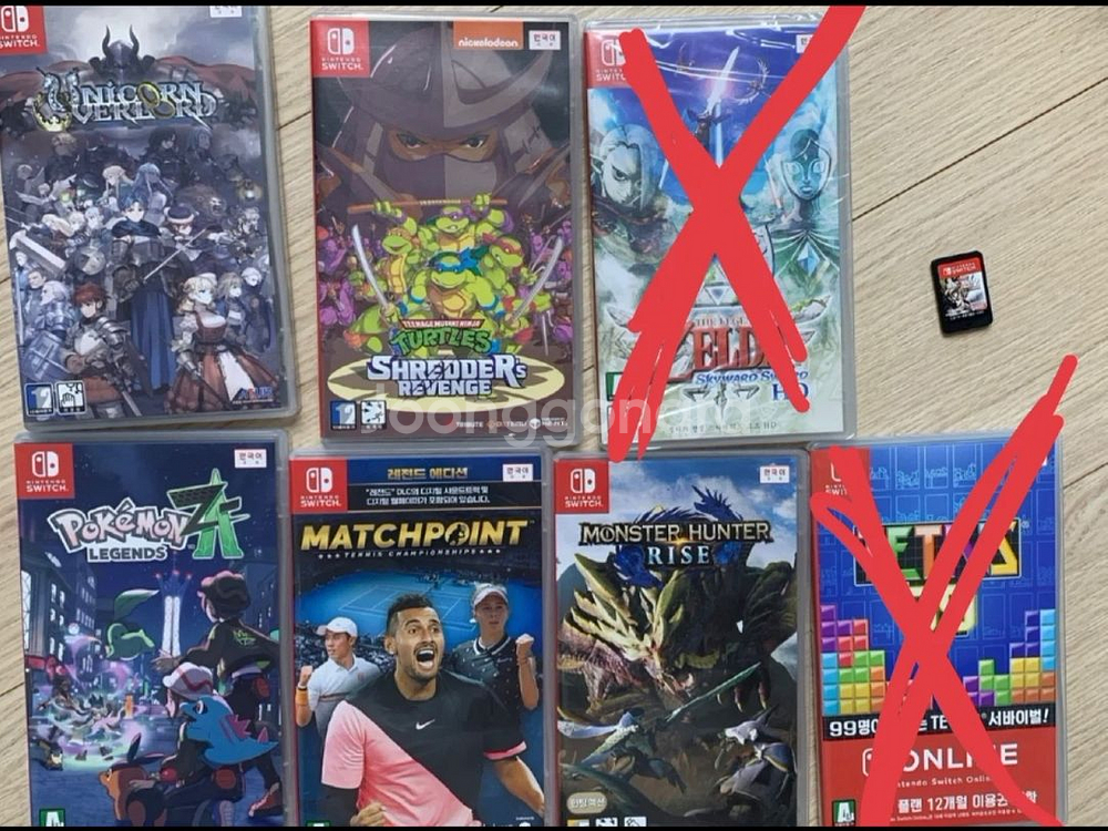 안녕하세요 닌텐도 스위치 게임칩 팝니다. #절충 문의 사절 - 포켓몬 ZA 레전드 : 판매완료 - 유니콘 오버로드 : 3만원 5천원 - 동물의숲 : 판매완로 - 포켓몬스터 바이올렛 : 판매완료 - 몬스터 헌터 라이즈 : 2만원 - GTA : 2만 8천원 - 드래곤볼 제노버스2 엑스트라 에디션 : 3만 5천원 (게임칩만 있음) - 돌연변이 닌자 거북이 슈레더의 복수 : 3만 5천원 - 매치포인트 테니스 챔피언십 레전드 에디션 : 1만원 - 젤다의 전설 스카이워드 소드 HD : 판매완료 - 테트리스99 : 판매완료 #절충 문의 사절 채팅주세요.