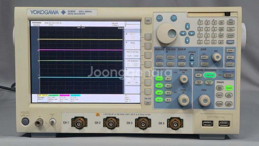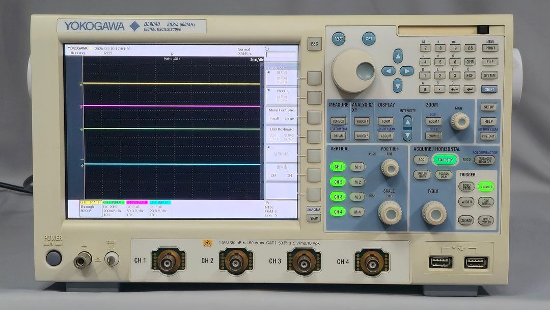 개인정보(거래정보)를 주고받는 행위는 사기에 노출될 수 있으므로 즉시 중고나라로 신고해 주세요Yokogawa DL9040 Digital Oscilloscope (N18) 기본스펙 500MHz, 5GS/s, 2.5Mw, 4ch, 모델 : 701307, 장착옵션 : -F-HE/P2/C10 구성품 : 본체,
