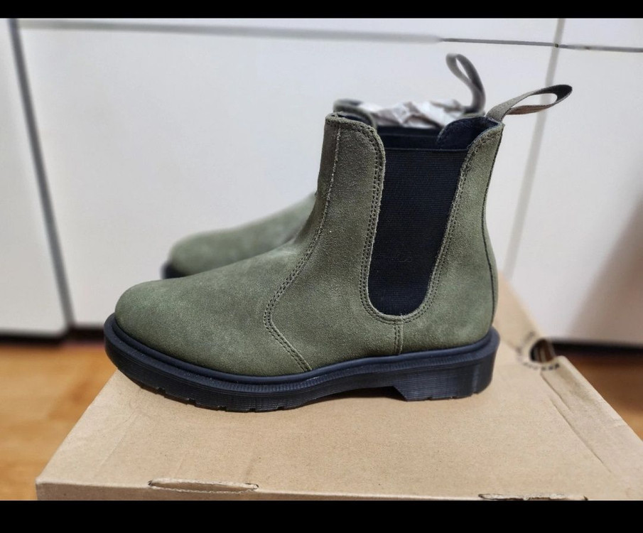 닥터마틴 Dr. Martens 2976 첼시 부츠 카키색상 방수 하이 스웨이드 선물받은 새제품 집어서 실착만 해본 새제품입니다 사이즈 UK5 (240) 날렵한 실루엣과 세련된 디자인이 특징이며, 클래식하면서도 현대적인 스타일을 연출할 수 있습니다. 서울 양천구 직거래 반값택배 가능합니다 010 4236 오오03