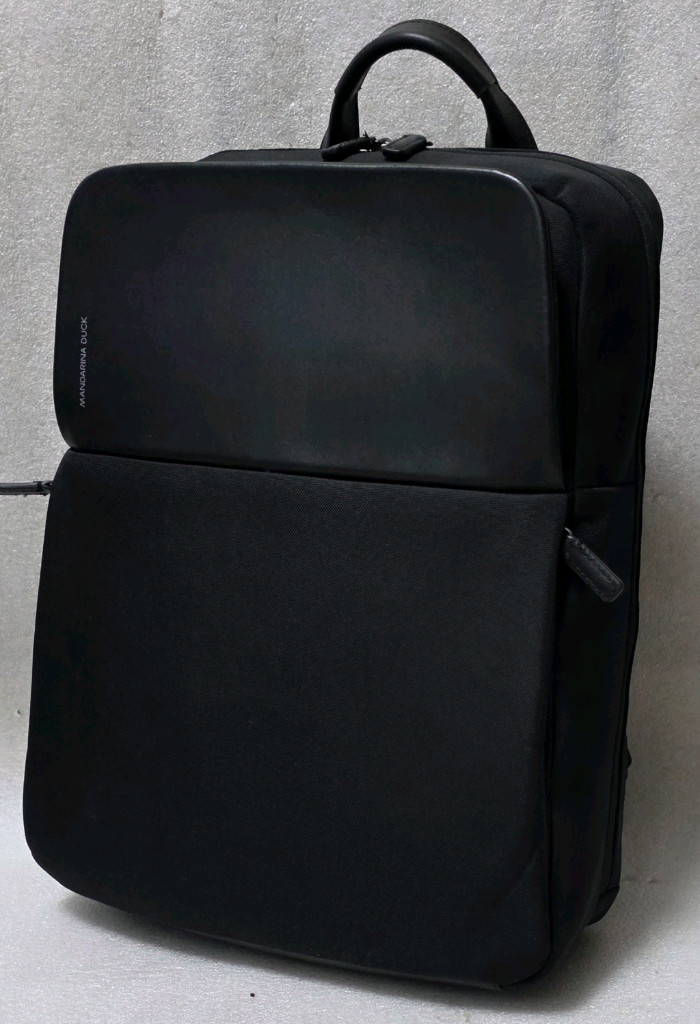 만다리나덕 MANDARINA DUCK 정품입니다 실용적으로 유명한 이탈리아 패션 브랜드입니다 사용하지 않았고 보관만 한 새 상품입니다 데일리 노트북 백팩겸 여행 배낭입니다 가로30 세로45 폭12 입니다 지퍼 개방 방식의 기본 백팩입니다 후면이 메인이고 ㄷ자로 펼쳐져서 수납이 편합니다 전면에 보조 공간 상단은 위에서 수납이 됩니다 전면에 보조 공간 하단은 측면에서 수납이 됩니다 전면에 상단과 하단은 천연 가죽입니다 후면에서 캐리어에 거치가 가능합니다 만다리나덕 ECO SMALTO EST01001은 깔끔한 디자인과 가벼운 무게(약 0.9kg)로 직장인 출퇴근 및 대학생 데일리 백팩으로 인기 있는 제품입니다. 재활용 나일론 소재를 사용하여 내구성과 친환경성을 갖췄으며, 15인치 노트북 수납이 가능한 내부 공간을 제공합니다. 디자인: 심플하고 고급스러운 블랙 컬러의 백팩으로, 직장인들의 정장이나 캐주얼한 복장에 모두 잘 어울립니다. 수납력: 15인치 대 노트북과 태블릿PC 전용 수납공간이 있어 알찬 수납이 가능합니다. 소재: 리사이클 나수일론 78%와 천연가죽(소가죽) 22%가 혼용되어, 가벼우면서도 튼튼한 내구성을 자랑합니다.