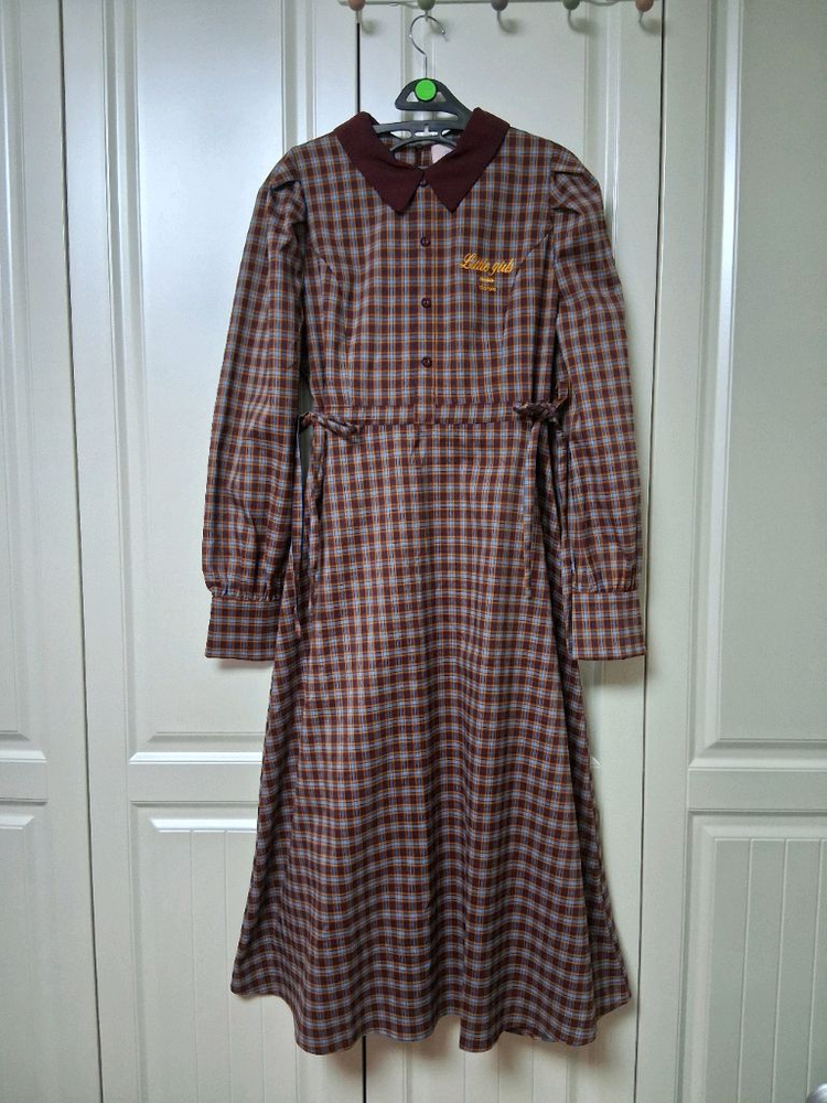 로라로라 체크 카라 롱 원피스 프리사이즈 55~66 총장 120. 가슴단면 44~5 cm 차분한 체크 패턴이 클래식하고 사랑스러워요 앞면 단추는 장식. 오픈되지않아요 뒷지퍼 허리양옆 리본 다시 풀어 묶기가능 허리라인 조절 가능해요 착용감조금 외 하자없이말끔합니다 드라이완료