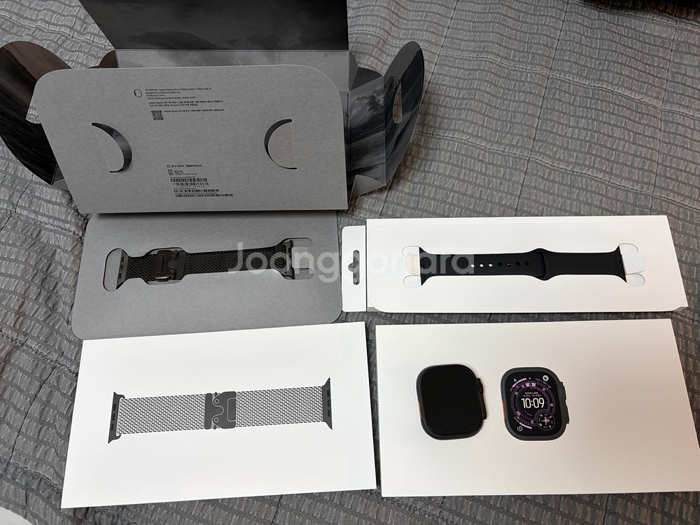 애플워치 울트라3 블랙 밀레니즈 루프 M 판매합니다 26년 3월 2일에 네이버 공식 스토어에서 구매했고 약 1달간 사용했습니다 배터리 효율 100% 약간의 생활감 정도 있으며 마지막 사진에 구매했을 때 부터 있던 작은 까짐 하나 있습니다 밀레니즈 루프는 1회 착용 후 보관만 하였고 정품 스포츠밴드 주로 착용했습니다 충전 케이블 미사용이며 구매하시면 정품 스포츠밴드 블랙 함께드립니다 택배거래 가능하며 문의사항 없으시면 바로 결제해주세요 직거래 평택시 지산동 행정복지센터 앞에서 시간 조율 후 가능합니다 네고 불가능하며 게시한 금액으로만 판매합니다