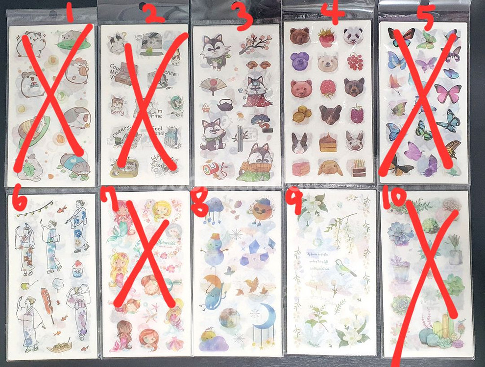 🙏상점공지🙏 ※새벽에 연락주시고 답없으면 차단합니다. 자다깨서 답을 해드리는데 찔러보고 사라지지마세요. ※24시간 알람을 해두었기에 웬만하면 5분내로 답드립니다. 구매문의를 주실땐 적어도 구매자분이 톡할 여유가 있을때 주세요. ※입금전 변심으로 거파시 잠수타지말고 말해주세요. 이해해드립니다. 사람간의 예의는 지켜주세요. ※마지막 톡 이후 24시간동안 답 없을 경우 구매의사없이 찔러본 것으로 간주하고 차단합니다. ================================ 화지 스티커 (칼선o) 크기 : 8cm x 16cm 장수 : 6장 재질 : 화지 가격 : 각 500원 -배송-(고정, 분실시 책임x) 우체국 우편 +1000원 : 평균 7일, 등기번호x, 추적불가. 준등기 +2000원 : 평균 2일 gs반값/cu끼리택배 +2000원 : 평균 4일 일반 택배 +4000원 : 평균 2일
