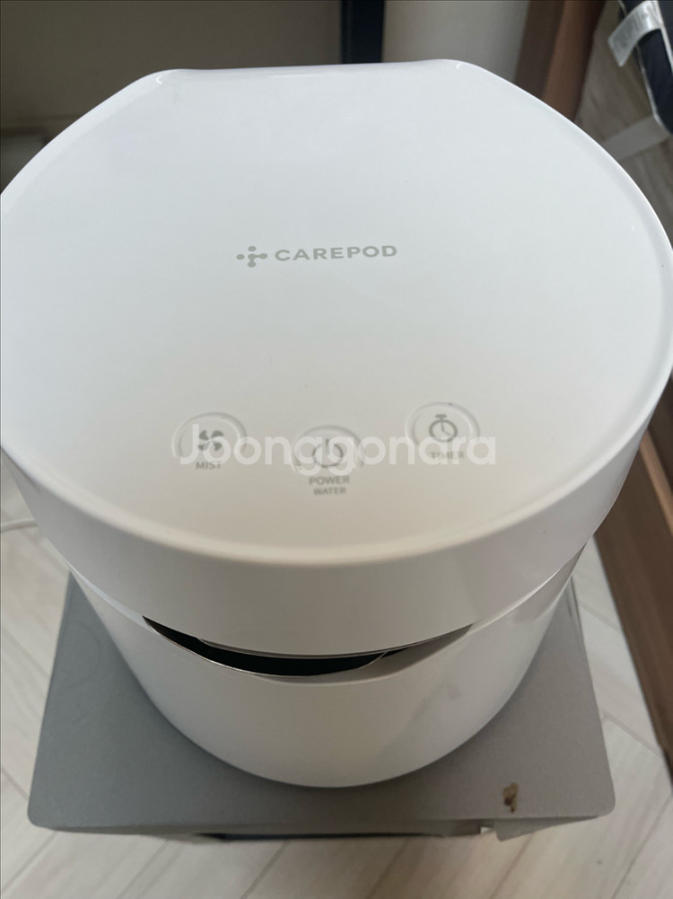 캐어팟 가습기입니다. 미스트, 파워/물, 타이머 기능이 있습니다 - 내부 스테인리스 스틸로 위생적입니다 - 세척이 용이하여 관리가 편리합니다 전원/물/타이머 버튼으로 쉽게 조작할 수 있습니다 깨끗하게 사용했습니다