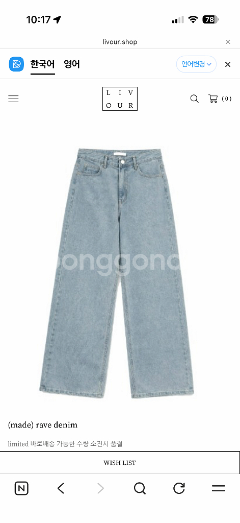 리브아워 레이브데님 m 새상품