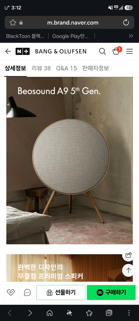 뱅앤올룹슨 A9 5세대 미개봉 새상품 판매합니다. 스피커계의 명품이자 인테리어의 완성이라 불리는 제품이죠. 5세대는 모듈형이라 나중에 부품 교체도 쉽고 소프트웨어 지원도 빵빵해서 평생 소장 가치 충분합니다. 모델: Beosound A9 5세대 (최신형) 상태: 완전 미개봉 (박스 씰 그대로 붙어있음) 구성: 본체 및 기본 구성품 일체 (미개봉이라 건드리지도 않음) 고가 상품이다 보니 직거래였으면 좋겠어요