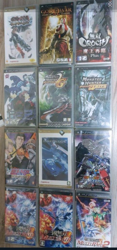 리스트에 없는건 판매완료 PSP 게임 다수 구매시 네고가능 만원단위 페르소나3 어스토니시아스토리2. 각. 20 하츠네미쿠 디바 한국정발 13 카우보이비밥영화. 10 길티기어 이그젝스 액센트 코어+ 세가랠리레보. 각 . 9 새)레인 원더 6.0 블리치 소울 카니발2. 신천마계.. 각 5.0 EXIT. 스맥다운 대 로우 2006. 남코뮤지움. 각 4.0 갓오브워 체인오브올림푸스. 몬헌프리덤유나이트. 토코봇 각 3.5 새)100만톤조각. 3.0 루미네스 2.8 철권6(CD만) 몬스터헌터2g. 스맥다운 대 로우 2007. 실황2013.(일) 각 2.3 디시디아듀오. 새)펌퍼잇업익시드 . 새)로코로코2 건담VS건담넥스트+ 각. 2.0 가면라이더오즈 릿지레이서2 디스가이아 싸움대장5 체이스캅(매X) 진삼국무쌍(매X) 새)MLB 각 1.5 진삼국무쌍멀티(한) 싸움대장5(매x). 무쌍오로치플러스 각 1.2 릿지레이서. 디스가이아2 건담VS건담 멀티레이드2 위닝2010 원피스 새)블랙 스퀘어 새)클래지콰이 각 1.0 2차골판지전기 모두의골프2 갓이터. 건담 배틀택틱스 각 0.8 2차슈로대파계편 재세편(CDx) 에브리엑스텐드 언톨드 멀티레이드 진삼국무쌍(일) 오로치. 몬헌2, 3(일) . 삐뽀사루. MLB 각. 0.7 위닝09 G월드 블랙스퀘어 클래지콰이. 각 0.5 크라이시스코어 한글대사집 2.0 알칩 극마계촌. 6.0 슈로대A . 철권6 각 2.0 스매시코트3 0.8 철권5.한글 0.7 나머지. 0.4 호환충전기 0.5 환불불가. 다수구매시 절충가능. 반값택배 2500원. 일반택배 5,000원