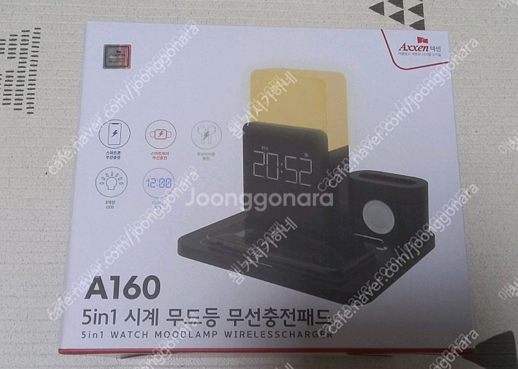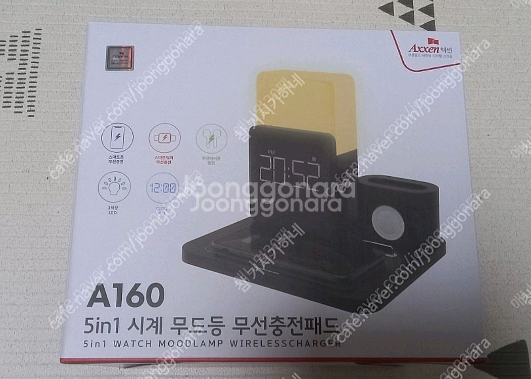 Axxen 액센 A160 5in1 시계 무드등 무선충전패드 팝니다 미개봉새제품이구요 -스마트폰 무선 충전 -디지털시계 -무드램프 -무선 이어폰 충전 -스마트워치 충전 -스마트폰 거치대 판매가격- 반값택포25000원 중랑구 직거래도 가능해요