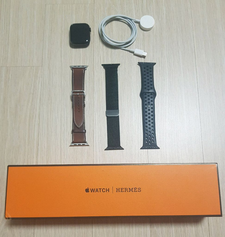 애플워치7 에르메스 배터리 100% 팝니다 applewatch7 hermes 45mm 스테인리스 gps 셀룰러 입니다 애플서비스센터에서 배터리 교체 했습니다 애플워치 에르메스의 꽃인 가죽 밴드 보유중이며 다른 분위기로 전환시 사용하려고 네이버에서 구입한 밴드 2종류와 워치 충전독 같이 드립니다 사진 보시고 사실분 연락주세요 부산 입니다