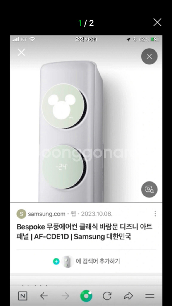미개봉)삼성 비스포크 에어컨 바람문 패널 디즈니 그린